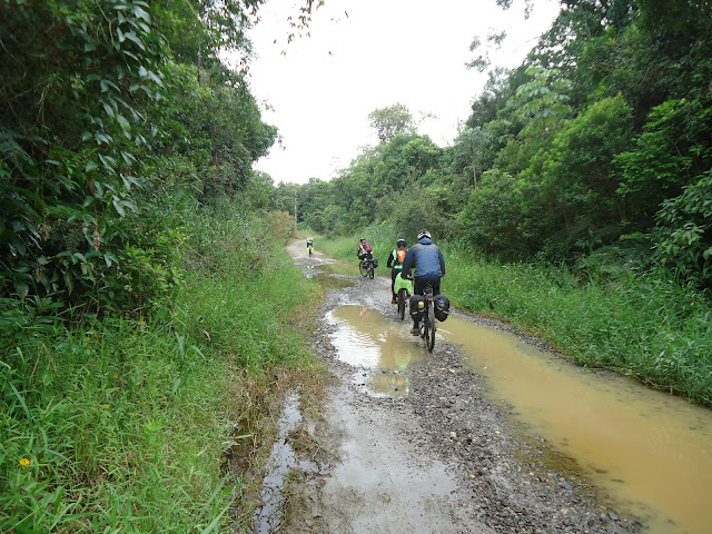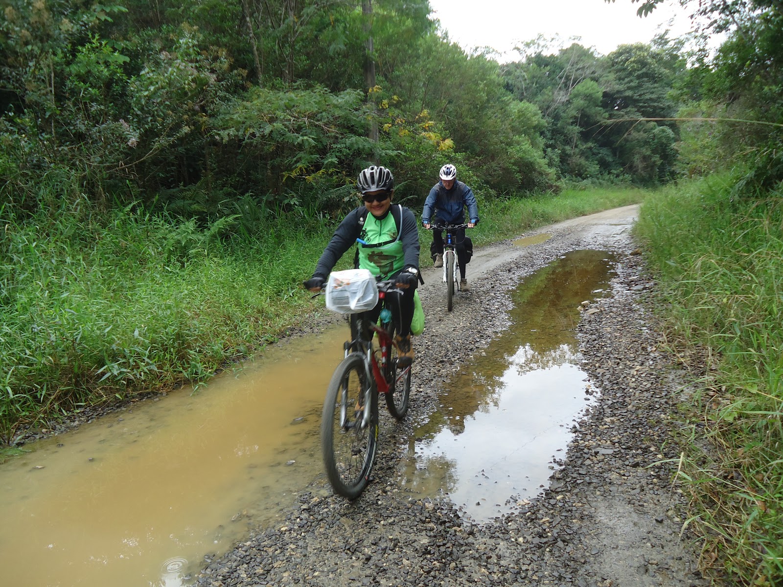 Haviam uns locais com poças d'água, devido a chuva de vários dias. Percebemos que estávamos tendo sorte com o clima!